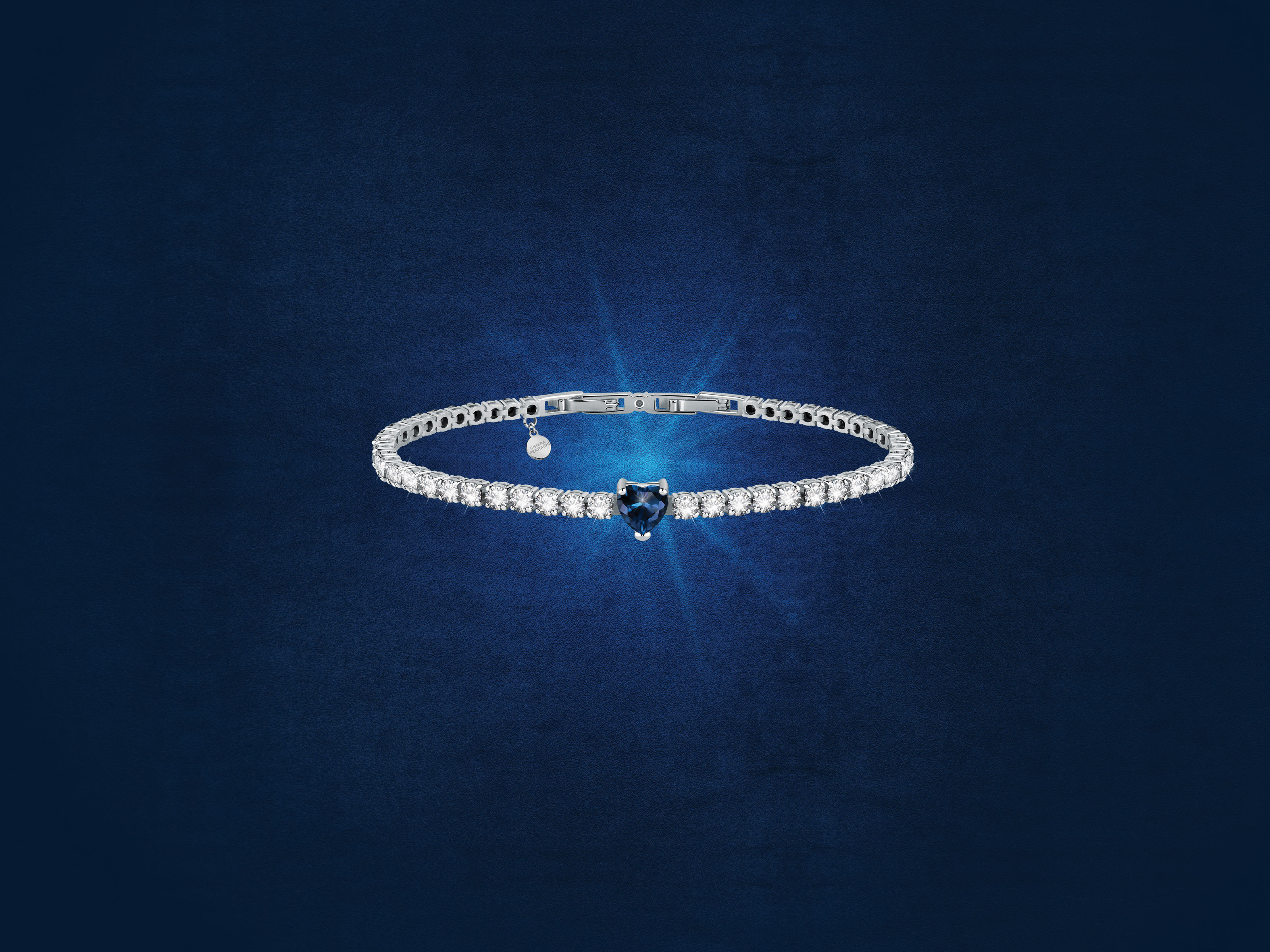 Bracciale CHIARA FERRAGNI DIAMOND HEART BRACELET SILVER+BLUE CZ 175+15MM J19AUV14
