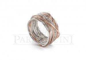 Anello Filodellavita Classic 13 fili in argento 950 al palladio e oro rosa 9 kt e diamanti bianchi 0,21 ct AN13ARBT