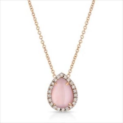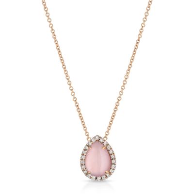 Girocollo in oro rosa, madreperla rosa, pavè di diamanti 0,10 ct