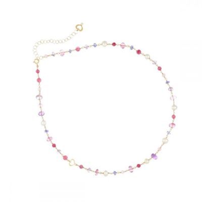 Ametista viola, Topazio rosa, Tormalina rosa, Tanzanite e Perla bianca
