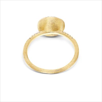 Poesia e arte di incontrano in questo anello realizzato a mano in oro 18kt e brillanti, dal gusto elegante e senza tempo.