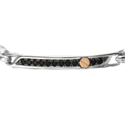 Bracciale da Uomo della Marca Zancan collezione Alpha. Caratterizzato da una fila di spinelli neri e da una vite in oro rosa 18kt posti su una targa centrale. Bracciale interamente realizzato in argento 925%