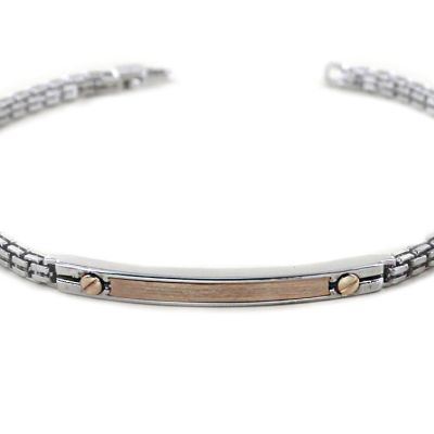 Bracciale da Uomo Zancan in argento 925/000 e oro rosa 18 kt. Uno stile minimal e contemporaneo adatto per qualiasi occasione. Bracciale zancan con targa centrale in argento silver e dettagli in oro 18 kt rosa