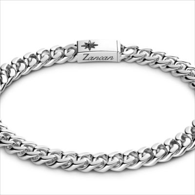 Bracciale a grumetta media Zancan in argento 925. La maglia morbida in finitura lucida ha una chiusura a scatto caratterizzata dalla rosa dei venti Zancan. La particolare colorazione è ottenuta da una lavorazione al rodio bianco che ne rende l’aspetto inalterabile