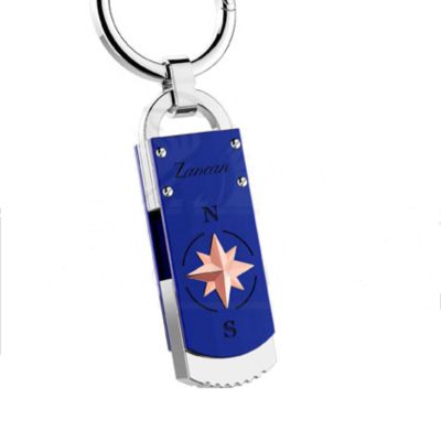 Portachiavi Costituito Da Chiavetta Usb Da 8Gb, Acciaio 316L Medicale Con Trattamento Pvd Blu E Oro Rosa Di Colore Blu. Gioiello Con Soggetto A Forma Di Rosa Dei Venti