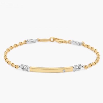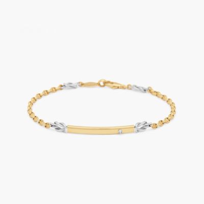 Bracciale Zancan in oro 18 kt.Il bracciale è caratterizzato da una maglia meccanica in oro giallo, piastra centrale in oro bianco con diamante, nodi in oro bianco che ne esaltano il design. Appartiene alla collezione Insignia Explorer, che si caratterizza per il suo stile minimal e la ricercatezza nei dettagli