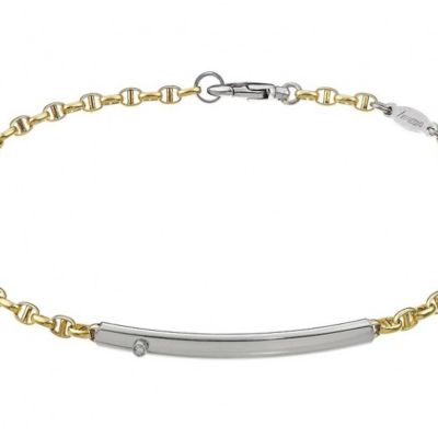 Bracciale Zancan per Uomo, collezione “Insignia Gold”. Bracciale in oro giallo 18 carati con barra centrale in oro bianco 18 carati e diamante naturale