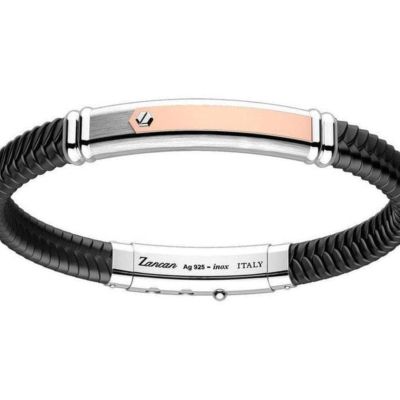 Pensata per l’uomo che vorrebbe esprimere la sua individualità e carattere, senza rinunciare alla cura di ogni dettaglio sia per le occasioni formali che informali. Il bracciale è completamente realizzato a mano in Italia. Collezione Zancan composta da bracciali da uomo che combina argento, acciaio e silicone all’oro rosa e giallo. Linee rigorose e dettagli unici e ricercati. Bracciale Zancan con targa in argento e inserto in oro rosa. Chiusura a pressione con sicura a scatto in acciaio anallergico