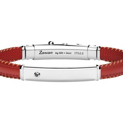 Bracciale ZANCAN argento pelle rossa. Questo bracciale da uomo del marchio Zancan è realizzato a mano in Italia unendo elementi d’argento 925 a parti in resistente pelle colorata