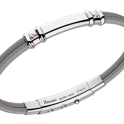 Bracciale da uomo in doppio resistente kevlar grigio con inserti in argento 925 chiuso con viti in oro rosa 18kt prodotti interamente in Italia