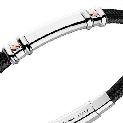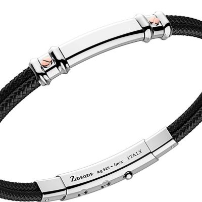 Bracciale da uomo di Zancan della collezione robikevlar. Gioiello in kevlar. Bracciale costituito da argento925, pvd nero e chiusura in argento. La chiusura è regolabile a scatto