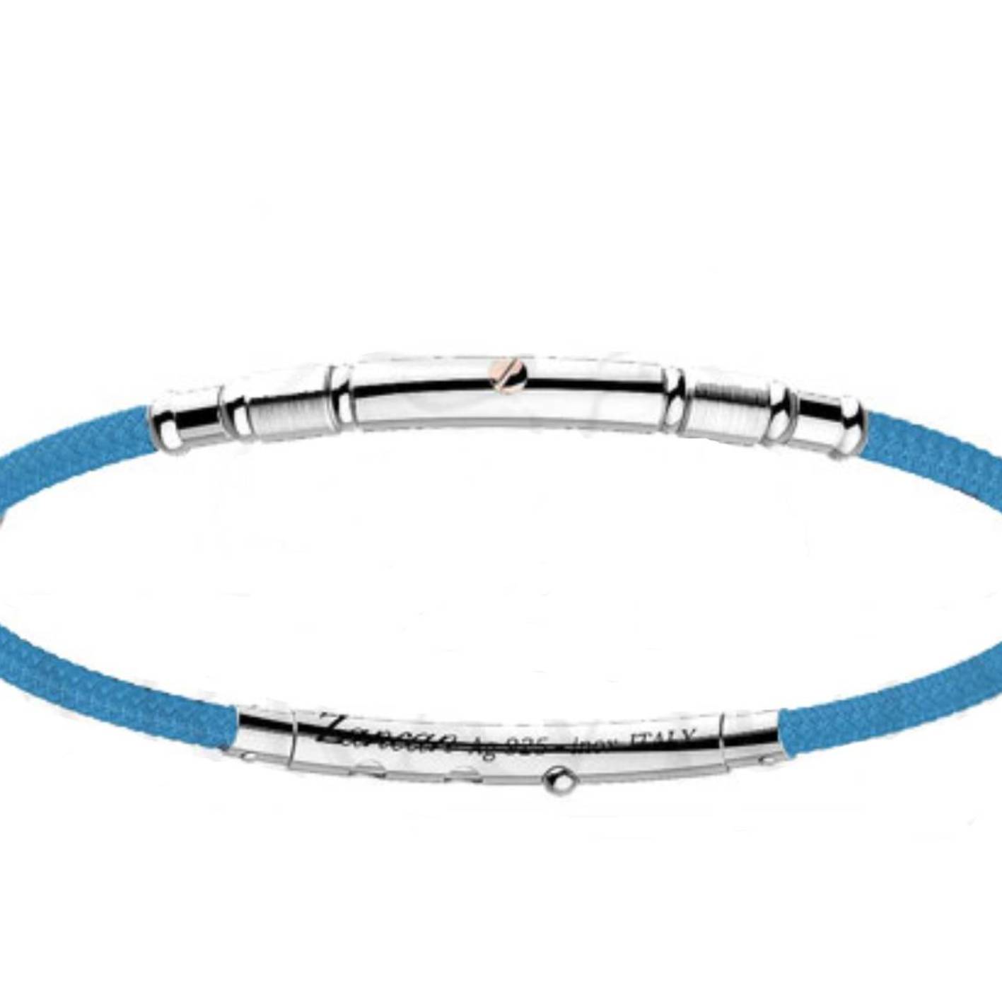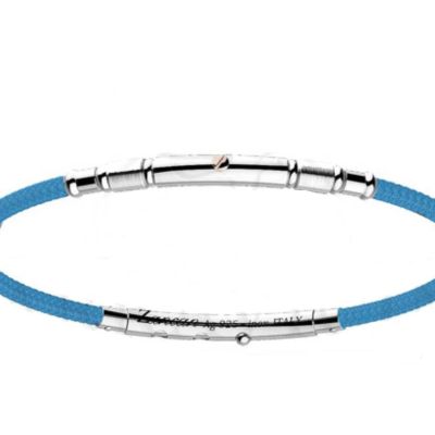 Bracciale realizzato in argento925 1,80gr, e 0,01gr in oro rosa 18 kt,chiusura in acciao 316L a scatto, di colore Azzurro