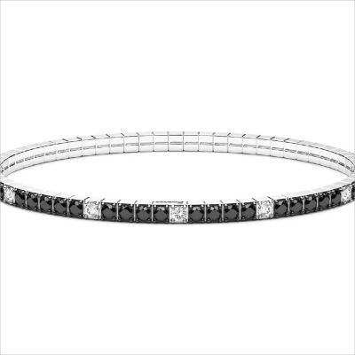 Bracciale tennis in argento 925 con sistema brevettato che permette l’elasticità e la flessibilità al bracciale. Le pietre sono zirconi di colore alternato nero e bianco. Molto pratico per la sua veloce indossabilità visto che è privo di chiusura.